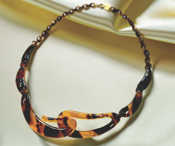 厳選した甲羅を使い、高度な技術を要するチョーカーネックレスです。先端の結びの形状が、「縁を結ぶ」と言う縁起物でもあります。季節感や流行に左右されないデザインで、さらに年齢層も選ばない上品さが特徴です。