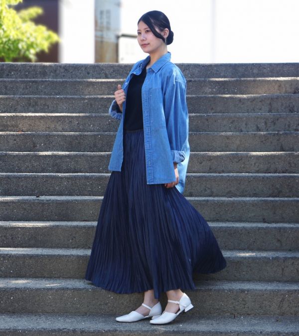 動きに合わせてふわっと広がる、美しいシルエットのスカートです。キュプラ100%の生地を使用しており、光沢感があり上品な印象、丈はロング丈とショート丈から選べます。コーディネートに合わせて自由に楽しめます。