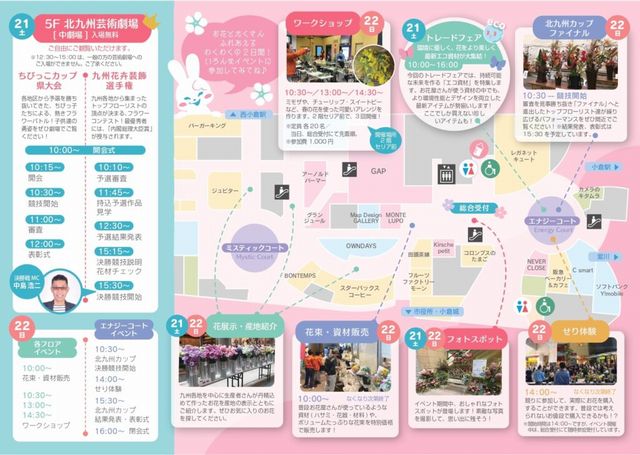 北九州花ロマン祭とは、30年以上の歴史と伝統のある北九州市最大の花の祭典です。花束の販売をはじめ、フラワーコンテスト・お花のセリ体験・ワークショップなどお花に関する楽しいイベントが盛りだくさん。リバーウォークがお花でいっぱいになります!