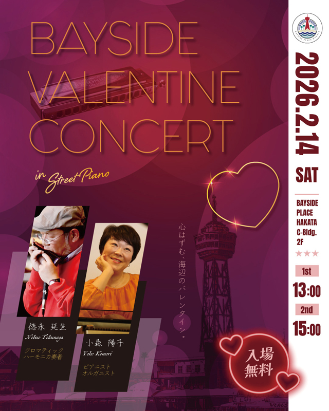 ベイサイドが贈る今年のバレンタインは“クロマティックハーモニカ”&ピアノのコラボコンサート!