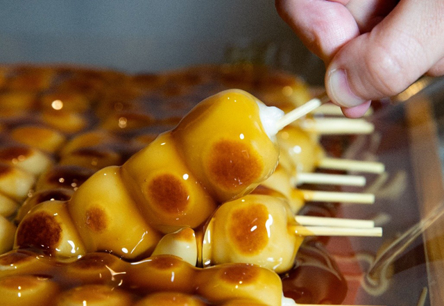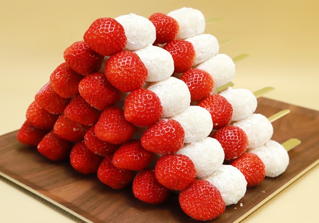 いちご大福串はカラフルなインパクトがある見た目で、通る人の目を引きます。伝統的な日本のお菓子、団子・大福をメインで販売してます。