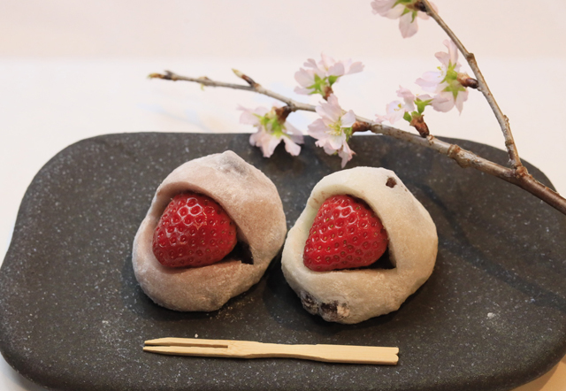 カラフルなかわいい商品で話題の和菓子屋。名物の苺大福串をはじめ、味にこだわった団子やわらび餅は絶品です。