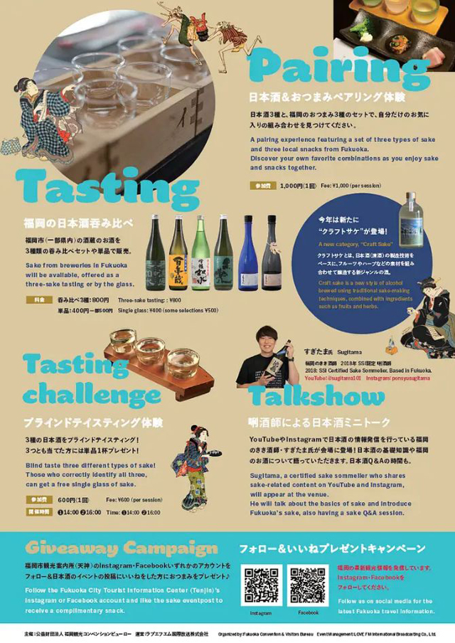 youtubeやInstagramで日本酒の情報発信を行っている利き酒師すぎたまさん(@ponsyusugitama)による日本酒のトークショーを実施。日本酒の基礎知識や福岡の日本酒について語っていただきます!