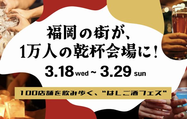 2026年3月18日(水)~3月29日(日)の12日間、福岡市内の飲食店約100店舗を舞台に、参加者1万人規模のハシゴ酒イベント「酒飲め福岡」を開催します。