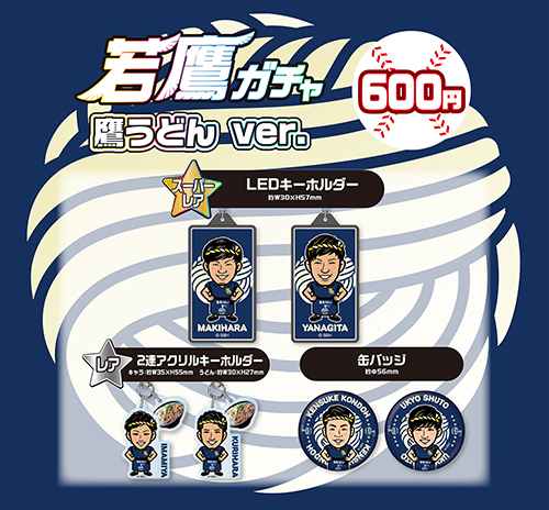 人気の若鷹ガチャにも鷹うどんver.が登場!ハチマキをしたうどん店主風デザインのアイテムをぜひゲットしてください♪