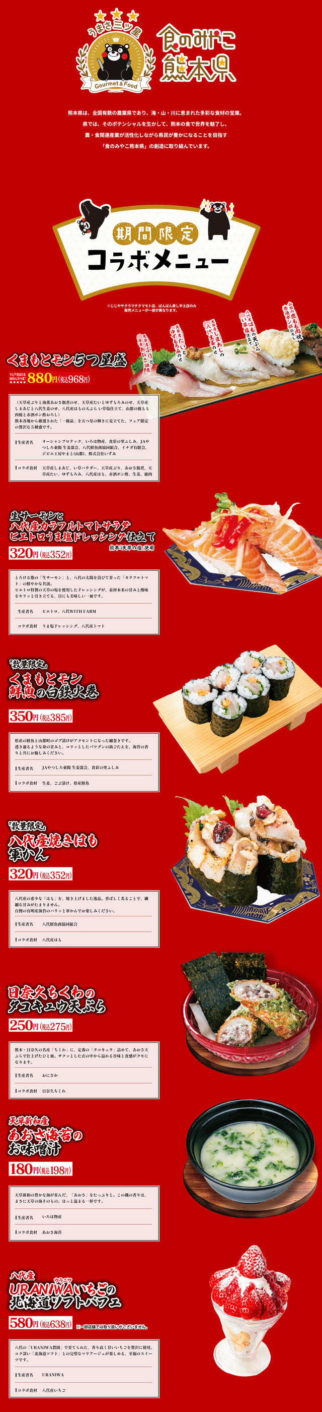 熊本県を拠点に、「ばんばん寿し」「九州すし市場」「海鮮特急レーン寿司じじや」などを展開する株式会社じじやコーポレーションは、株式会社くまもとDMCとの連携プロジェクト「くまもとモン×じじやジャック」の第2弾を、2026年3月20日(金・祝)~4月22日(水)に開催します。