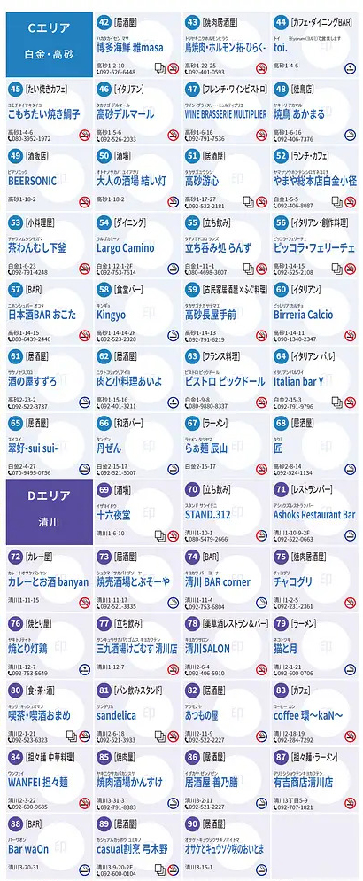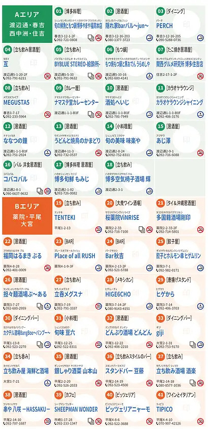 [Aエリア] 渡辺通・春吉・西中洲・住吉 :18店舗