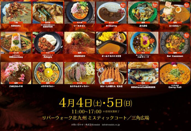 2026年4月4日(土)~4月5日(日)11:00~17:00、リバーウォーク北九州(北九州市小倉北区室町1-1-1)1Fミスティックコート・三角広場にて、「カレーフェス in リバーウォーク」が開催されます。