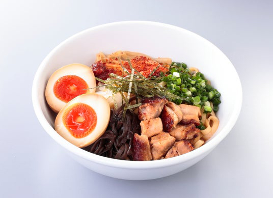 リピート1 位はこの商品。ラーメン屋ですのでラーメンが1 番数が出ますがリピートするのは皆このまぜそば!是非ご賞味ください。辛さの追加出来ます!