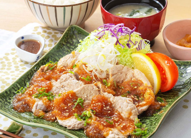しっとりやわらかな豚ヒレ肉を、柑橘の香りで軽やかに仕上げました。おろし柚香だれが爽やかに引き立て、食べ応えがありながらさっぱりと楽しめます。低脂質・高たんぱく質で、からだにうれしい一品です。