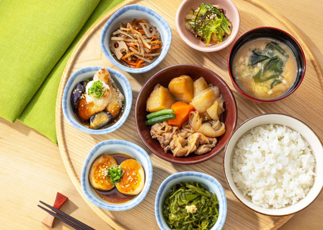 心もお腹も満たされる、毎日に寄り添う一食。小鉢だけで構成された定食はいろいろな味を少しずつ楽しみながら、肉・魚・卵・野菜を無理なく取り入れられ、からだをやさしく整えます。
