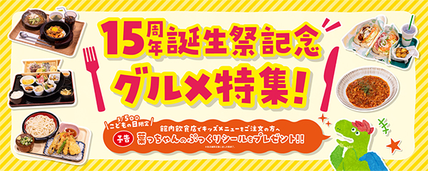 飲食店舗のおすすめメニューやお得なキャンペーンが盛りだくさん。対象店舗では15周年限定メニューも登場!