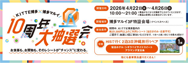 [イベント.05] 沖縄旅行など豪華賞品が当たる『10 周年大抽選会』を「博多マルイ」と合同開催!