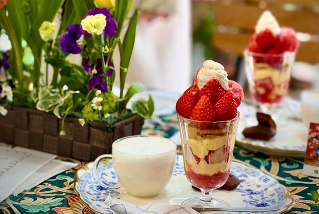 ケーキと11:00のランチの予約可能です。5月6日までの期間、ランチ予約でミニデザートプレゼント。