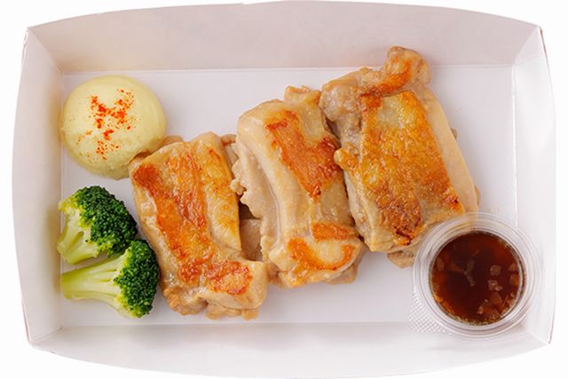 外側はこんがりと焼き上げ、中はジューシーに仕上げたチキンステーキです。程よい刺激のガーリック風味で、ライスにもよく合います。※チキンは食べやすい大きさに切り、よく噛んで召し上がりください。