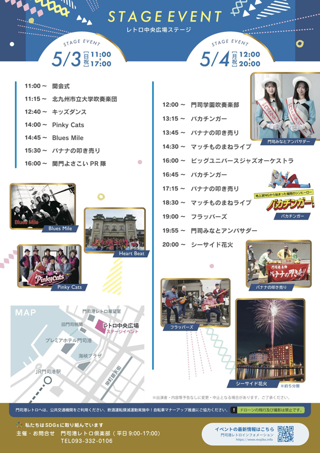 2026年5月3日(日・祝)11:00~17:00、5月4日(月・祝)11:00~20:00、門司港レトロ中央広場周辺にて「第30回 門司海峡フェスタ2026」が開催されます。小雨決行、荒天中止。