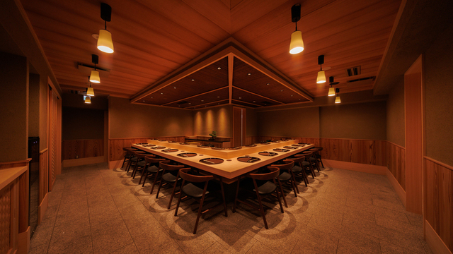 広い空間を確保した個室は6名様用個室を2室、4名用と8名用個室を1室完備。利用は2名からでお忍びやビジネスシーンにも対応可能。
