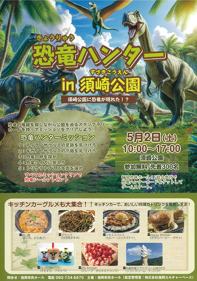 2026年5月2日(土)「福岡市民ホール」大ホールで開催される恐竜ラボ「ギガ・ミッション」に合わせ、 須崎公園にて子ども向け体験イベント「恐竜ハンター in 須崎公園」を開催します。